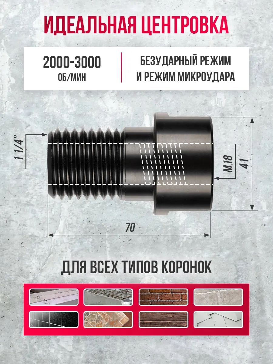 Переходник М1 1/4-М18 для алмазных коронок от TREND TOOLS представляет собой универсальное решение для строительных инструментов, позволяющее использовать алмазные коронки на дрелях с различными типами насадок. Этот переходник обеспечивает быструю и удобную смену инструментов, значительно ускоряя процесс работы. Созданный из высококачественных материалов, он гарантирует долговечность и надежность в эксплуатации. Благодаря точному соответствию стандартам, адаптер М1 1/4 - М18 отличается высокой совместимостью с широким спектром строительных инструментов для работы по любому из строительных материалов, независимо бетон это дерево или металл. У переходника идеальная центровка, которая позволяет работать на оборотах 2000-3000 об/мин. При этом подходит как при работе в безударном режиме так и с микроударом.