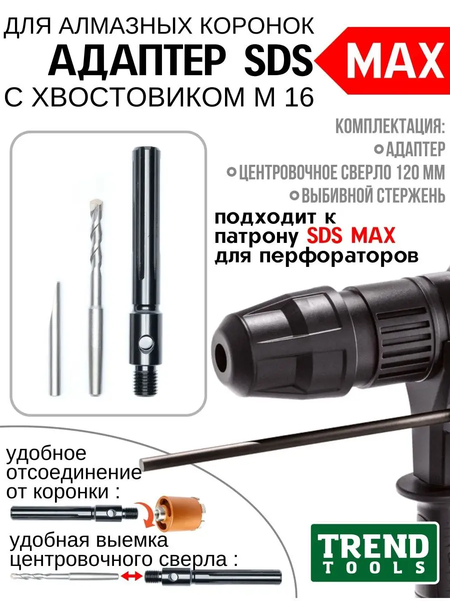 Адаптер М16-SDS Max для коронок с хвостовиком M16 производства компании Trend Tools – надежная и качественная оснастка.