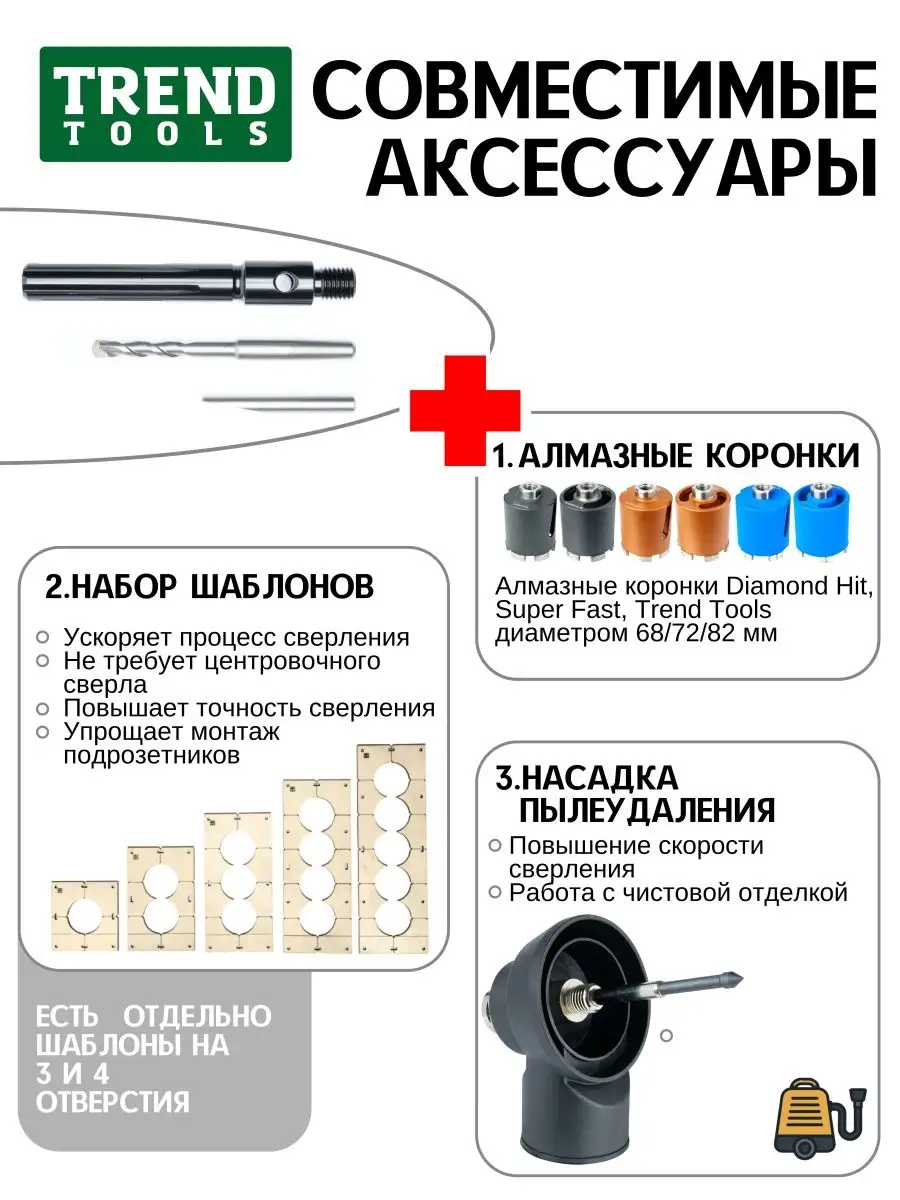 Адаптер рекомендован для использования совместно с алмазными коронками Diamond Hit, Super Fast (Адель), Trend Tools, Svertum, Hitbur, Hilberg, Keos и других производителей.