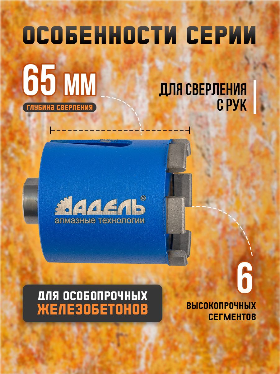 Коронка позволяет проделывать отверстия глубиной до 65 мм.
