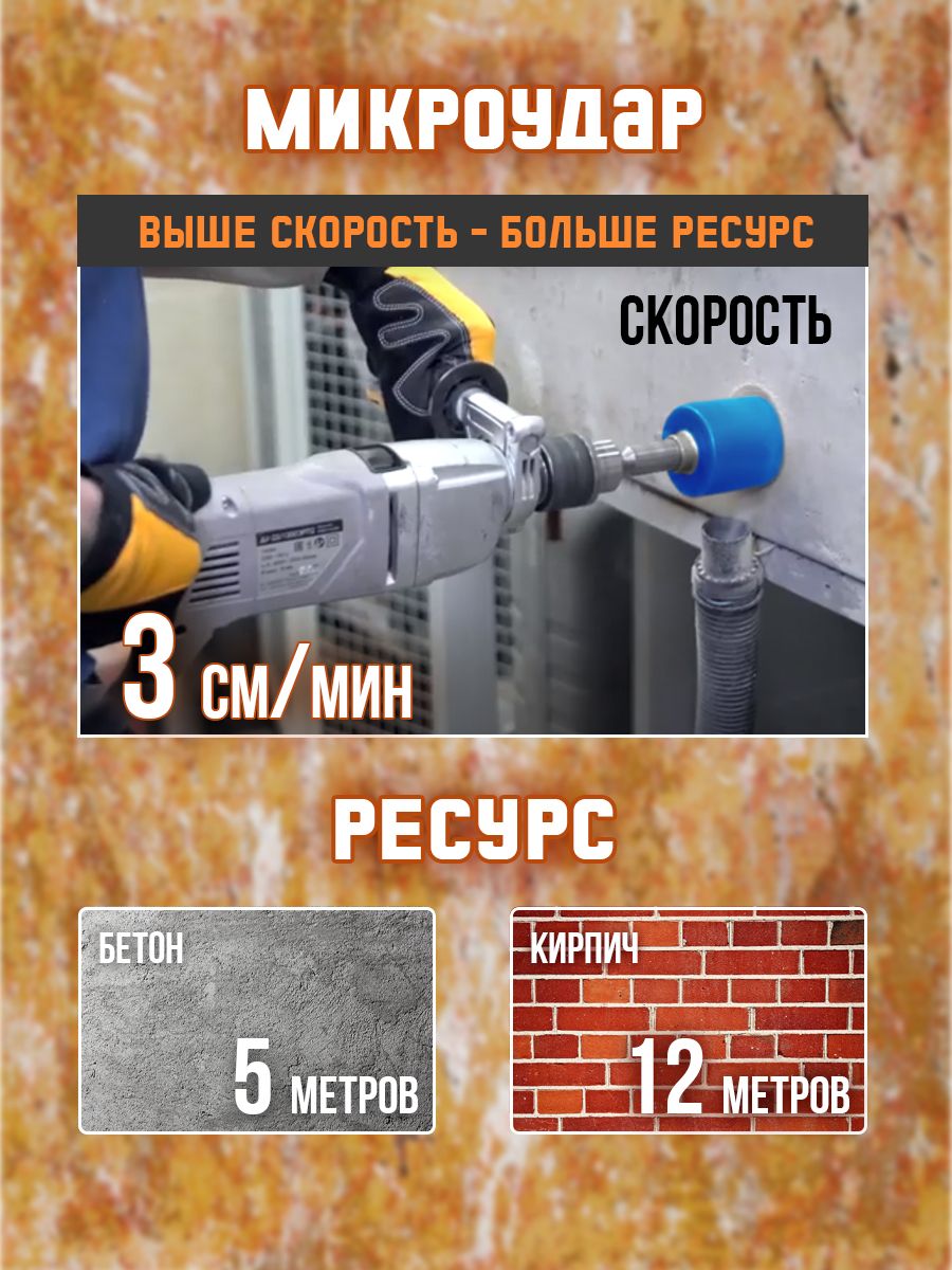 - ресурс инструмента (ж/бетон – 5 м.п.; кирпич – 12 м.п)