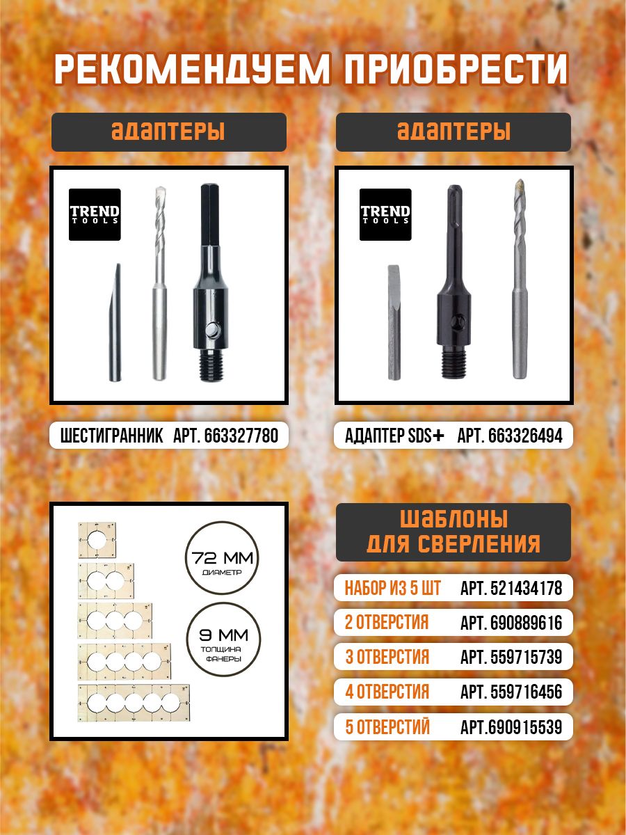 2. Глубина сверления: 65 мм