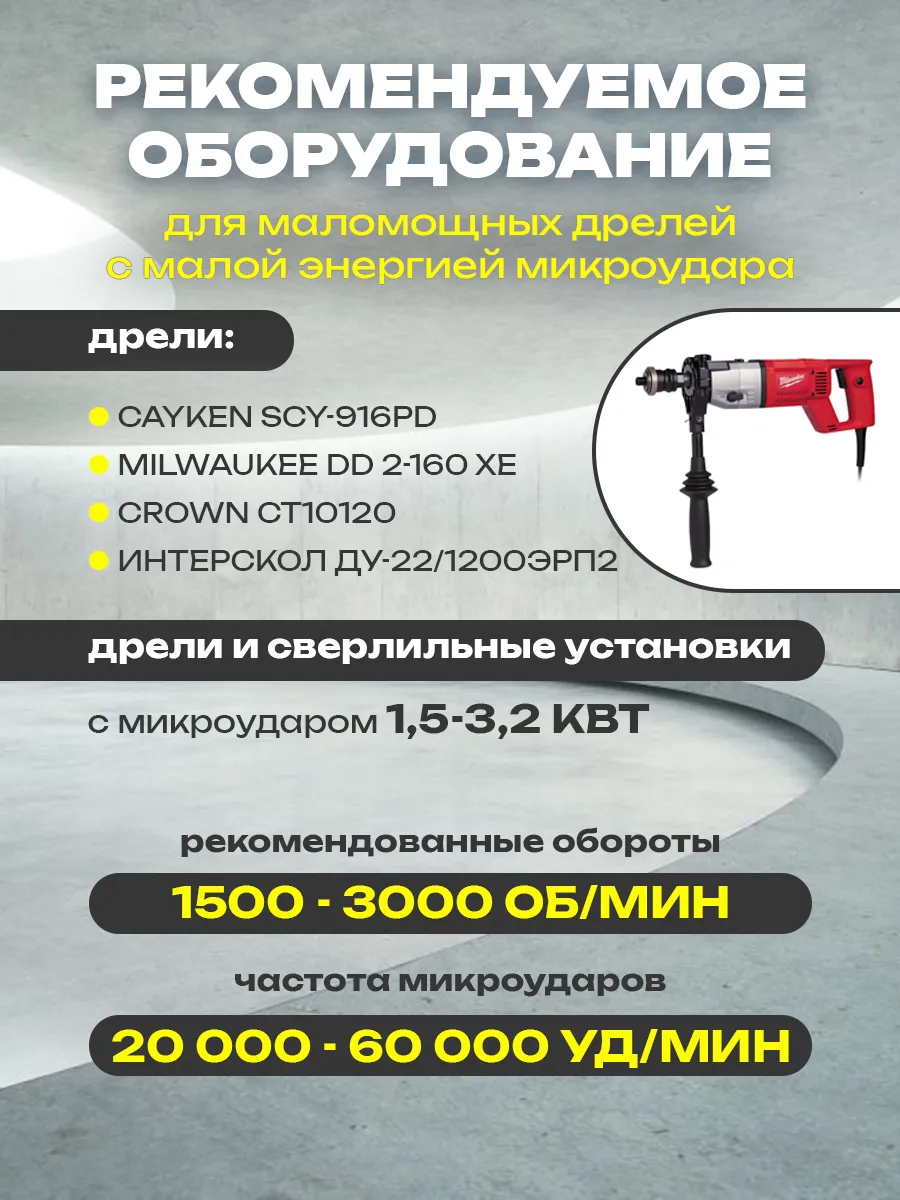 Средняя скорость сверления железобетона с арматурой 16 мм — 20-30 мм/мин, но зависит также от правильного подбора комплекта оборудования, диаметра арматуры.