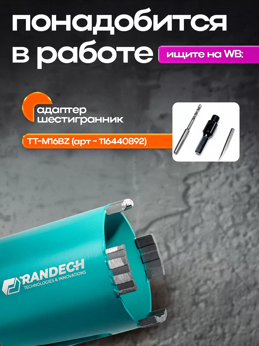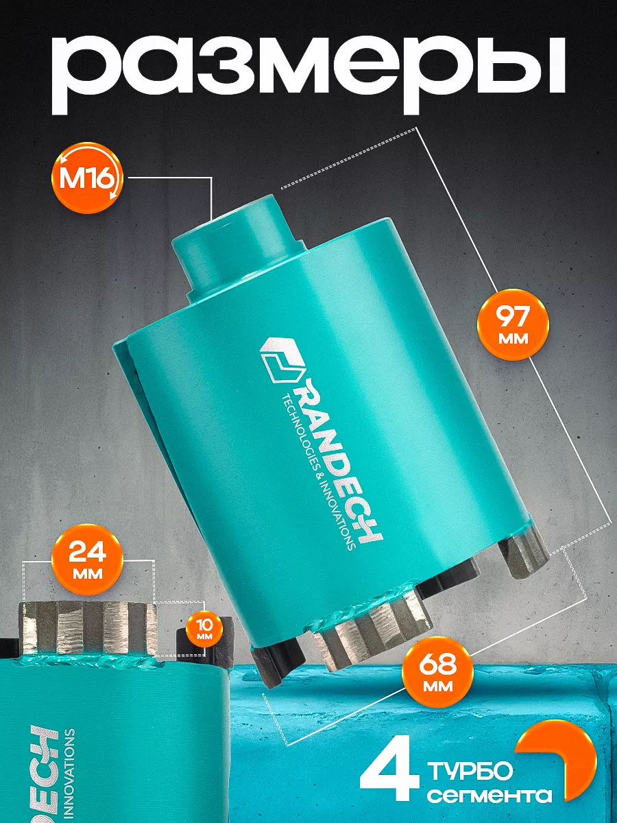 Алмазная коронка по бетону и кирпичу 68мм для подрозетников сверления без пыли с боковым пылеудалением от Randech – быстрое бурение отверстий для монтажа без подачи воды в безударном режиме.