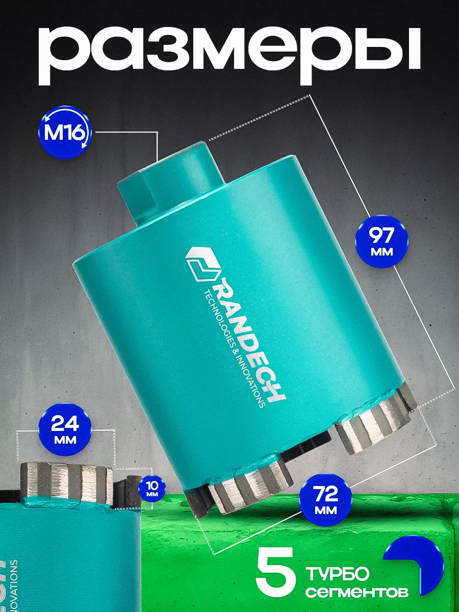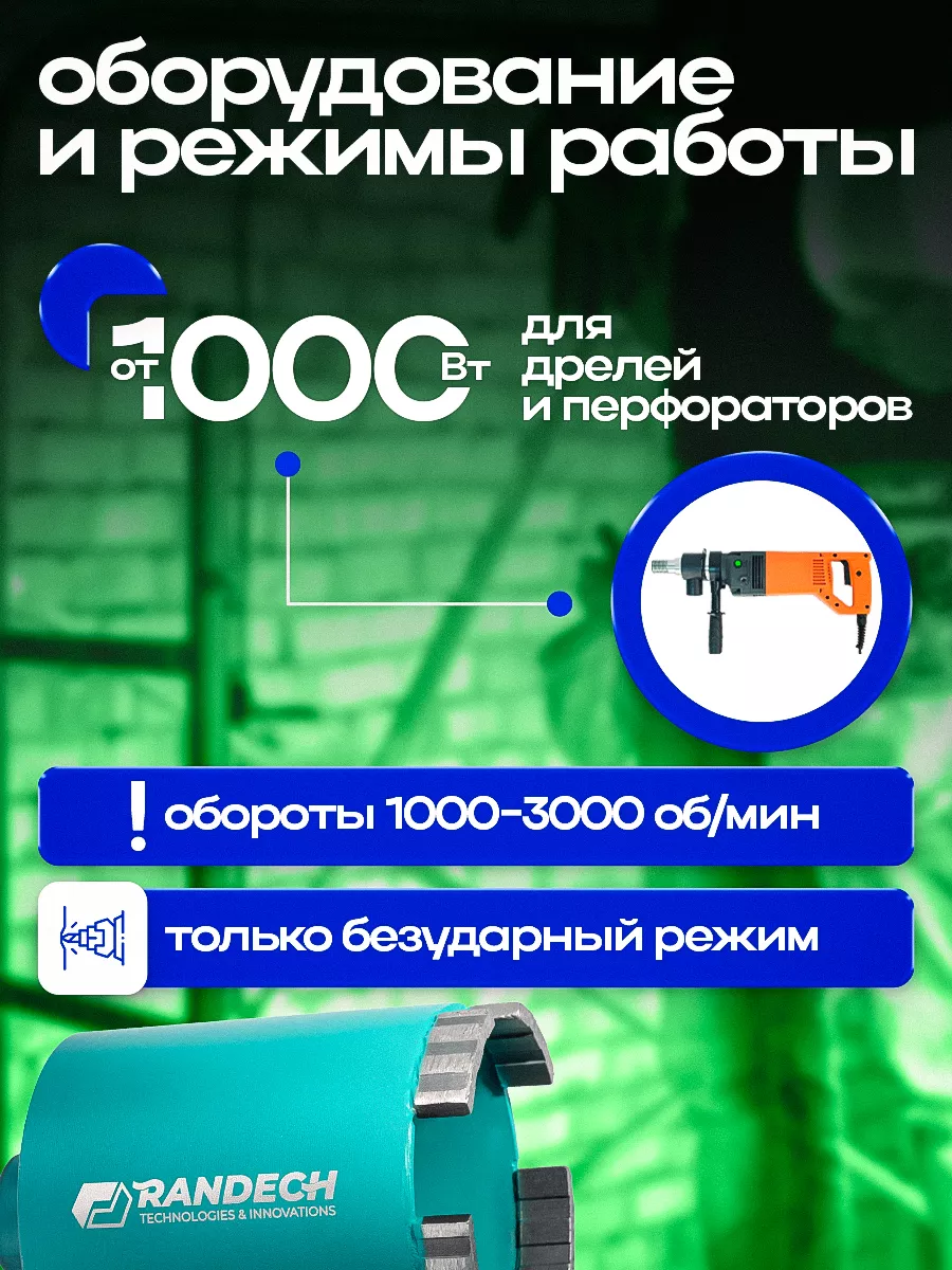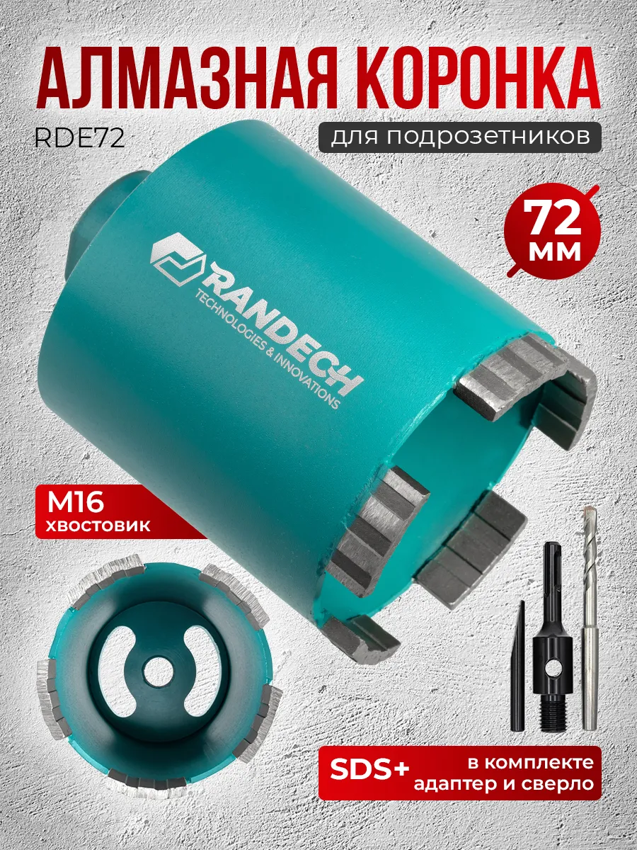 Алмазная коронка по бетону и кирпичу 72мм для подрозетников сверления без пыли с верхним пылеудалением от Randech – быстрое бурение отверстий для монтажа без подачи воды в безударном режиме под пыленасадку.