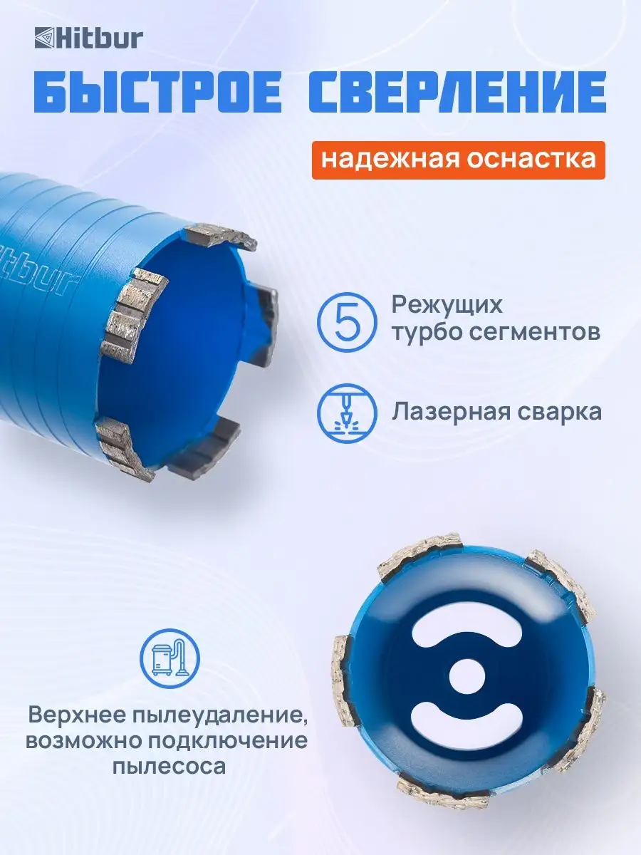 Такой инструмент от Hitbur даёт удобный уровень контроля при работе по бетону, кирпичу, железобетону и газобетону и ускоряет подготовку отверстий.