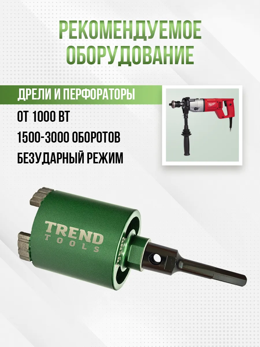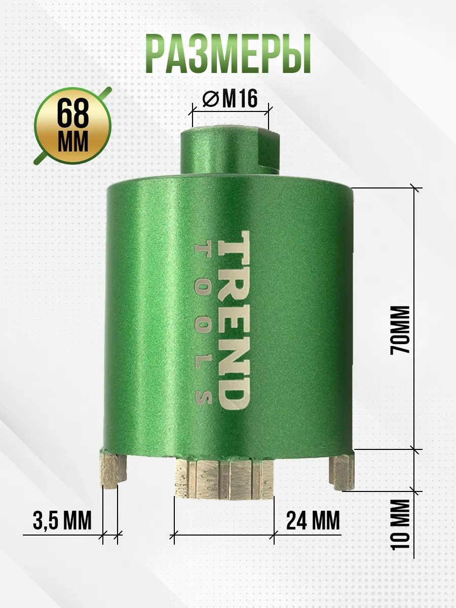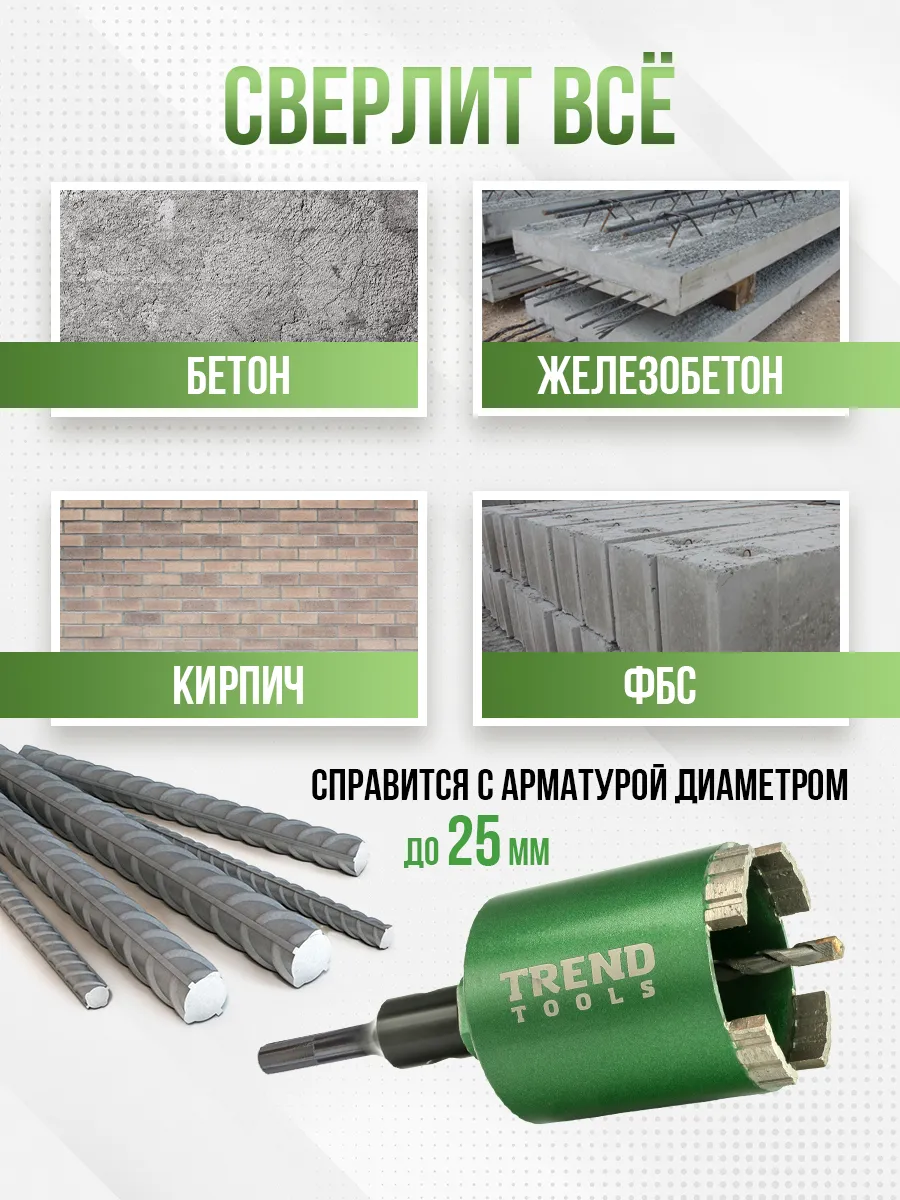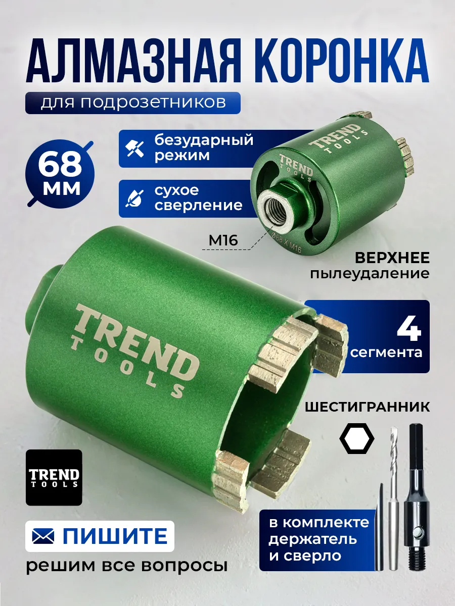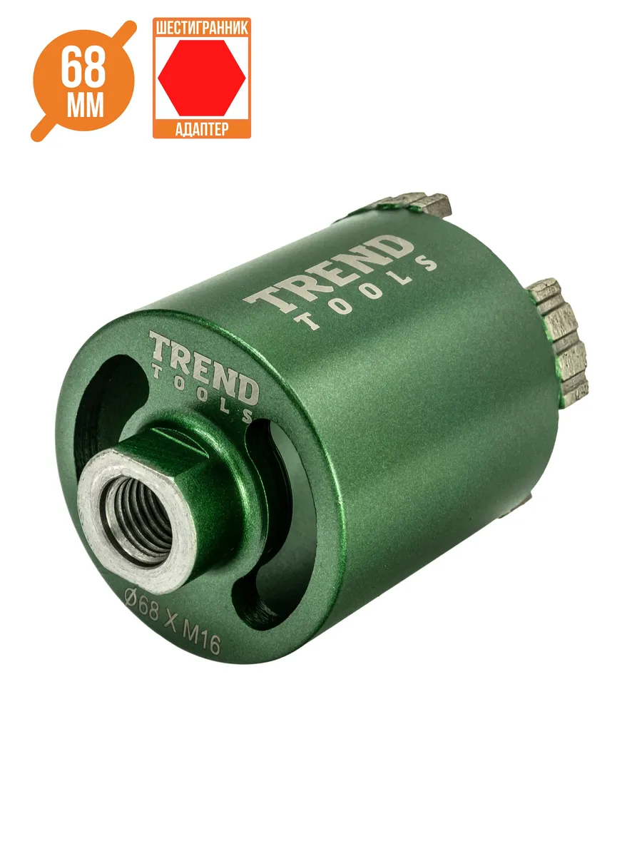 Алмазная коронка по бетону и кирпичу 68мм для подрозетников сверления без пыли с верхним пылеудалением от Trend Tools – быстрое бурение отверстий для монтажа без подачи воды в безударном режиме под пылеотвод.