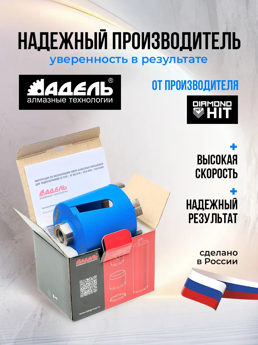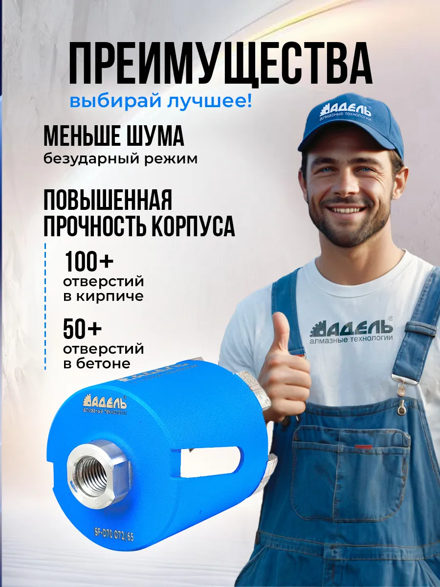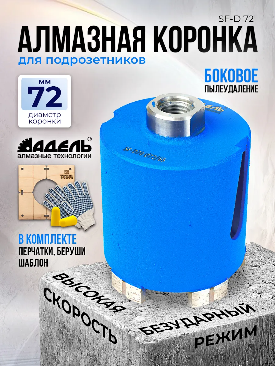 Алмазная коронка по бетону и кирпичу 72мм для подрозетников (бур) Адель Super Fast с боковым пылеудалением для сверления под розетки без подачи воды, сухой рез.