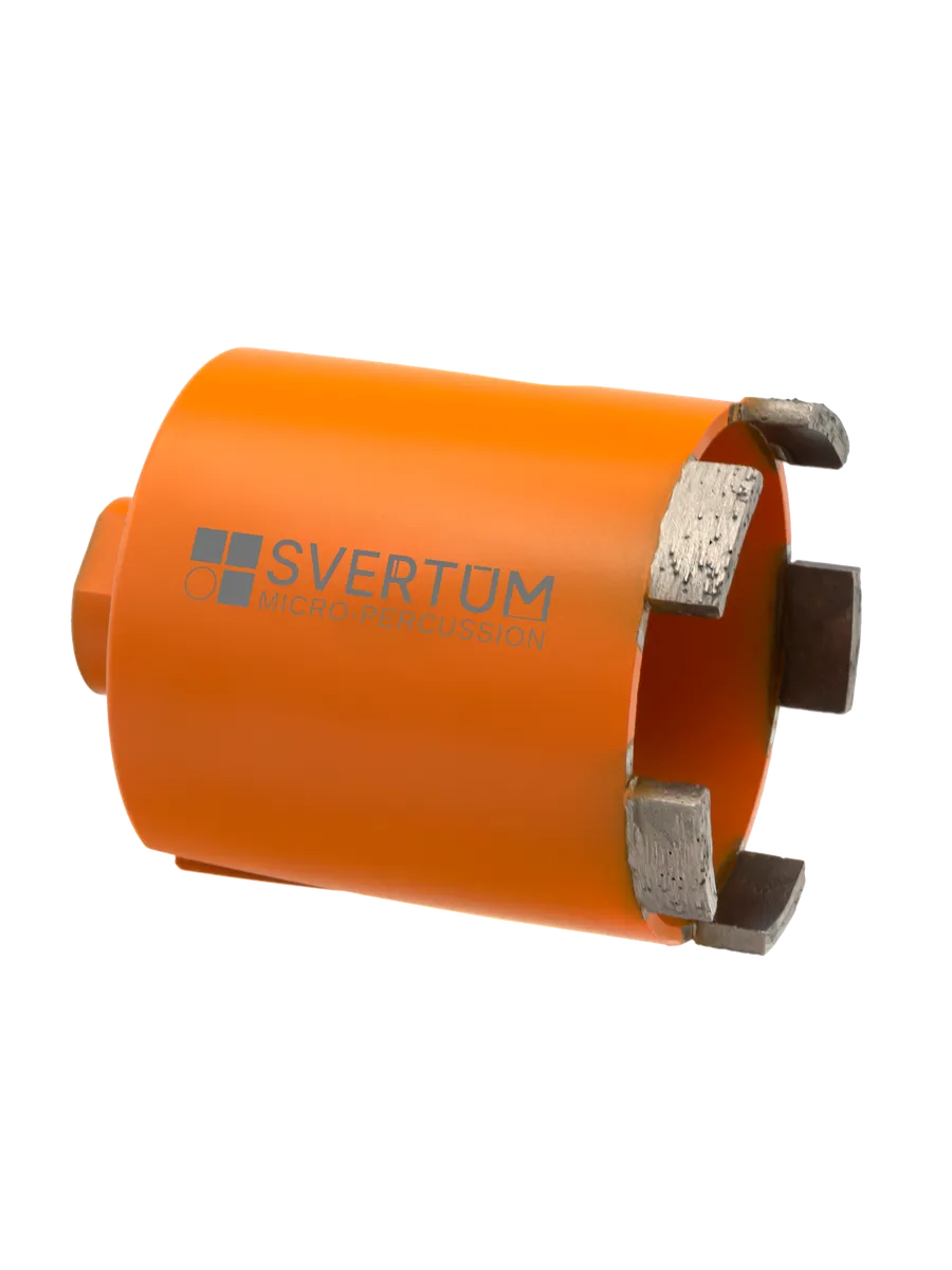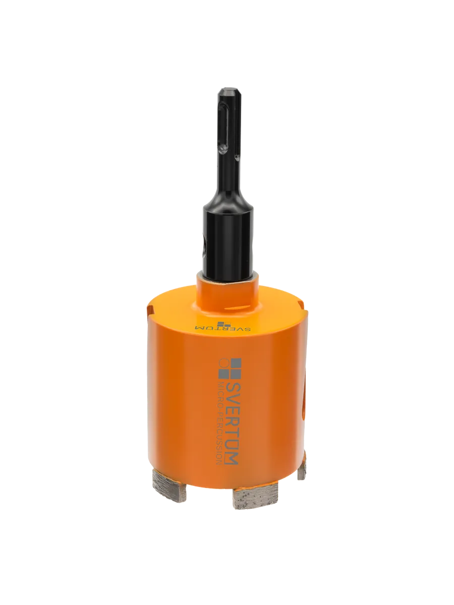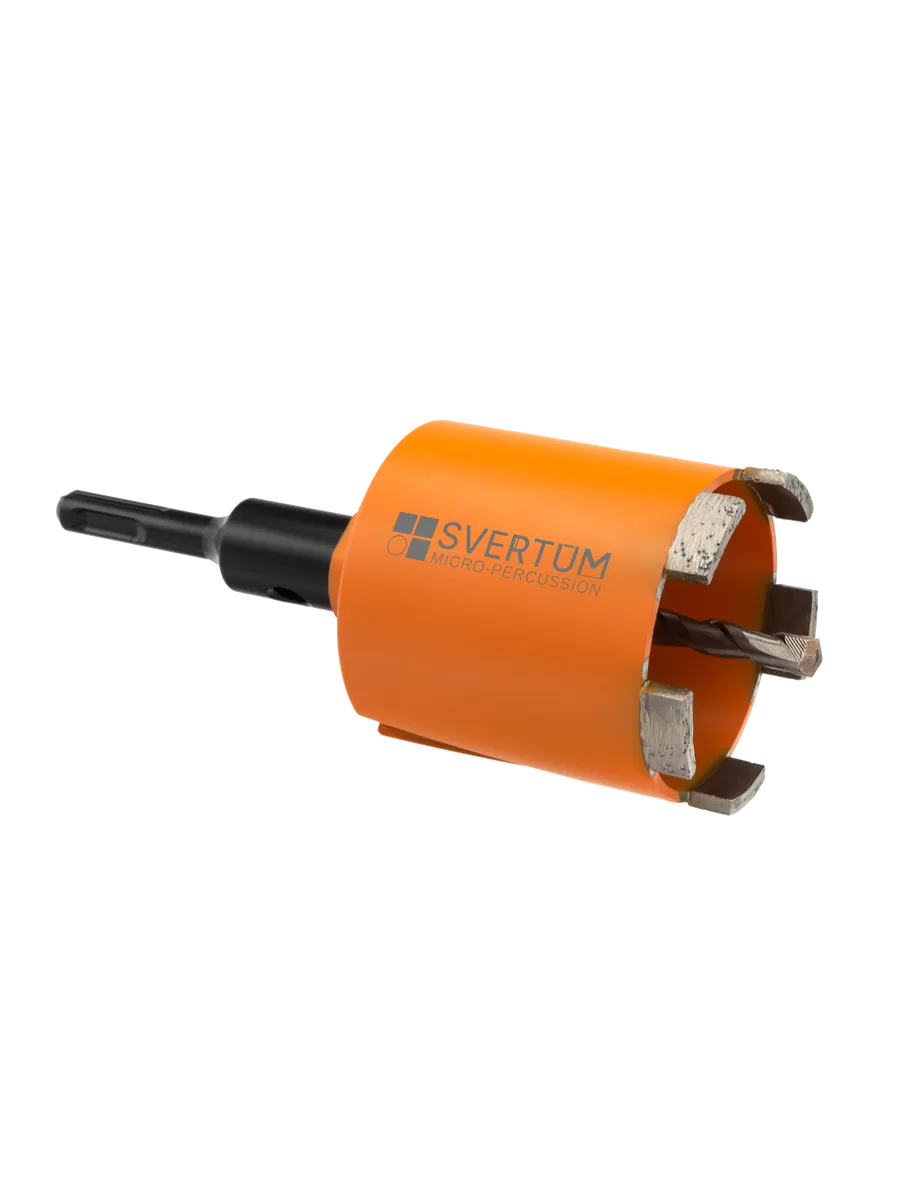 Алмазная коронка по бетону и кирпичу Svertum 72 мм с боковым пылеудалением и функцией микроудар — профессиональный инструмент для сверления отверстий под розетки, выключатели и распаечные коробки в различных строительных материалах. Инновационная технология микроудара обеспечивает быстрое и эффективное сверление без подачи воды, сухой рез.