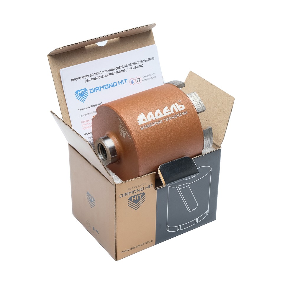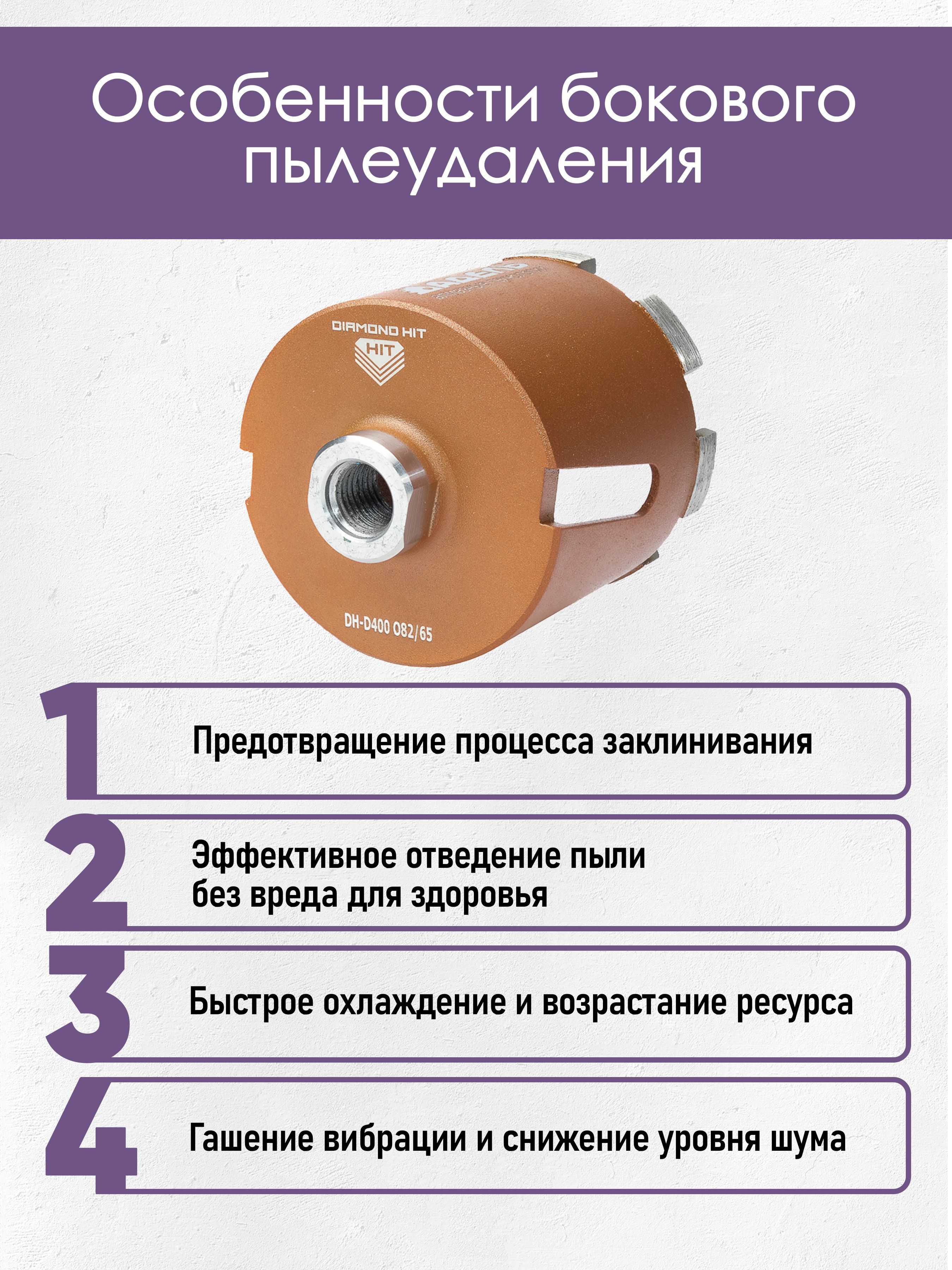1. Алмазная коронка по бетону и кирпичу DIAMOND HIT DH-D 400 Ø82 мм для сверления подрозетников.