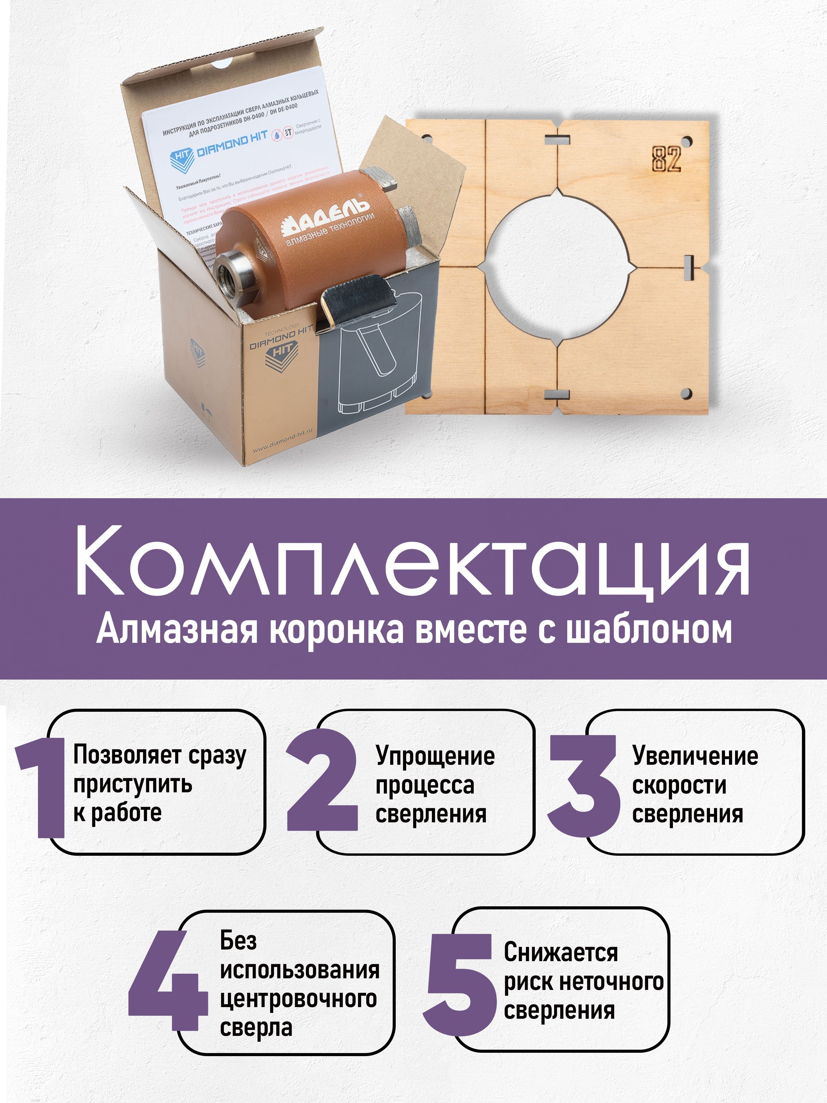 Покупая Алмазную коронку в комплекте с адаптером или шаблоном для сверления вы дополнительно получаете скидку.