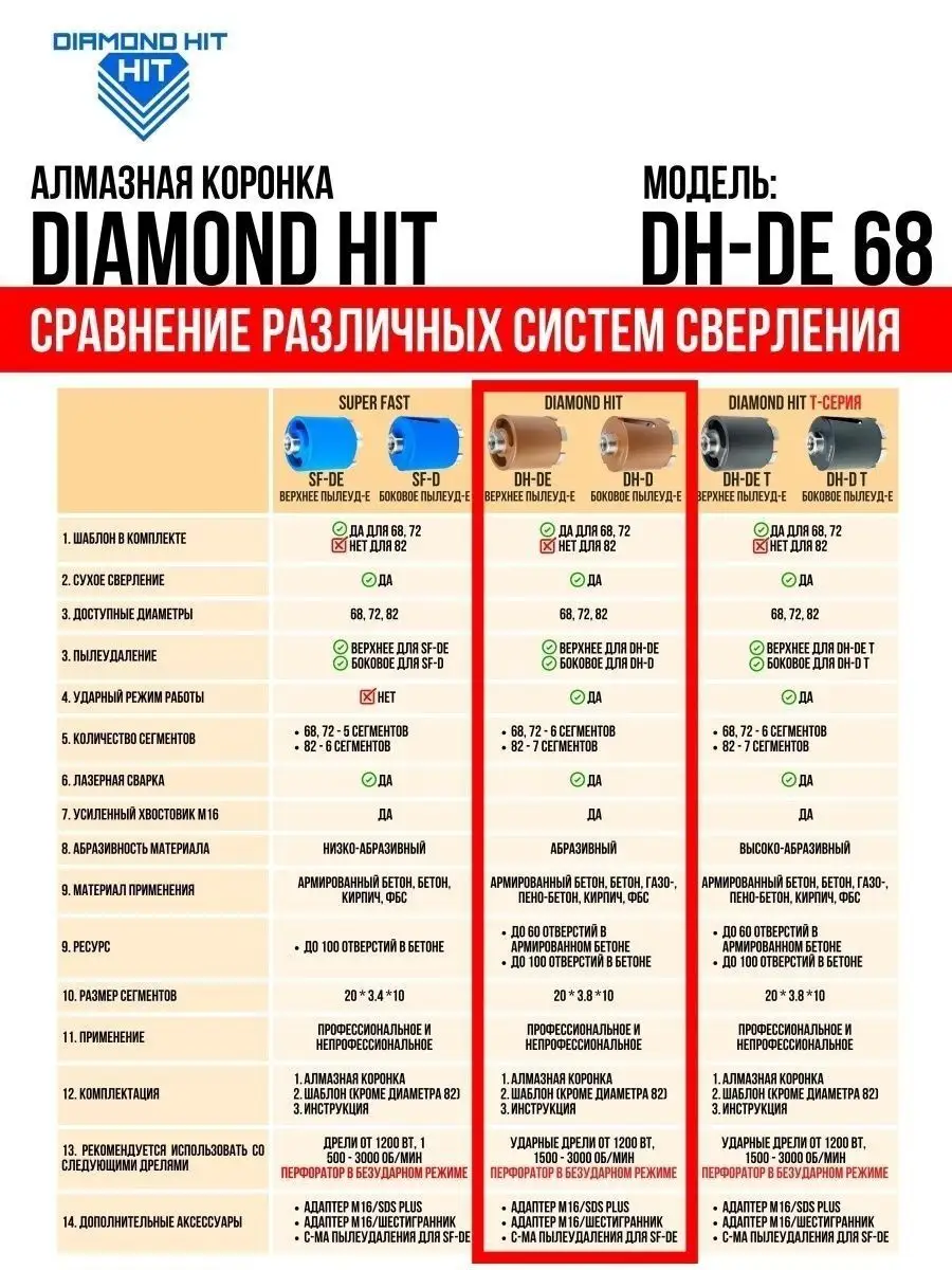 Коронка по бетону DIAMOND HIT обеспечит точное и быстрое сверление для розетки, экономию времени и идеальный результат даже в самых сложных условиях!