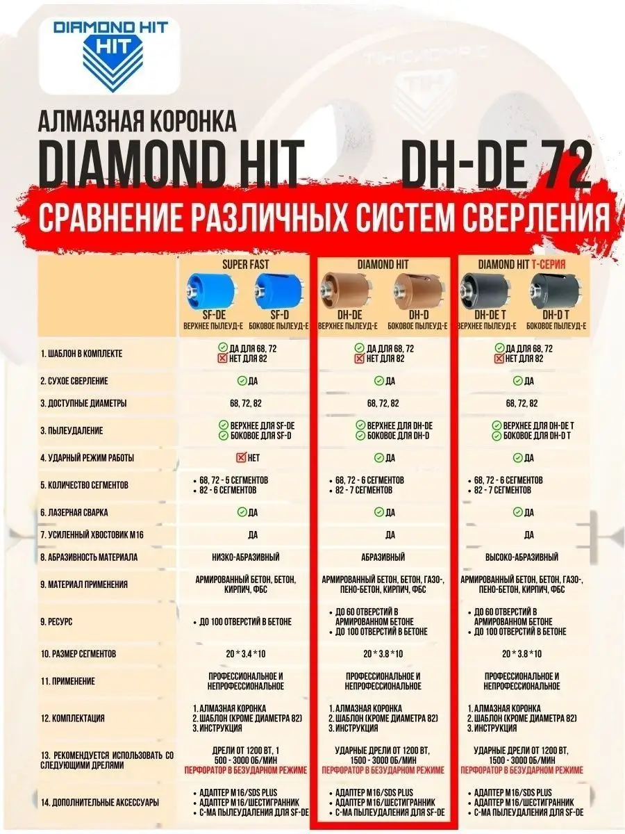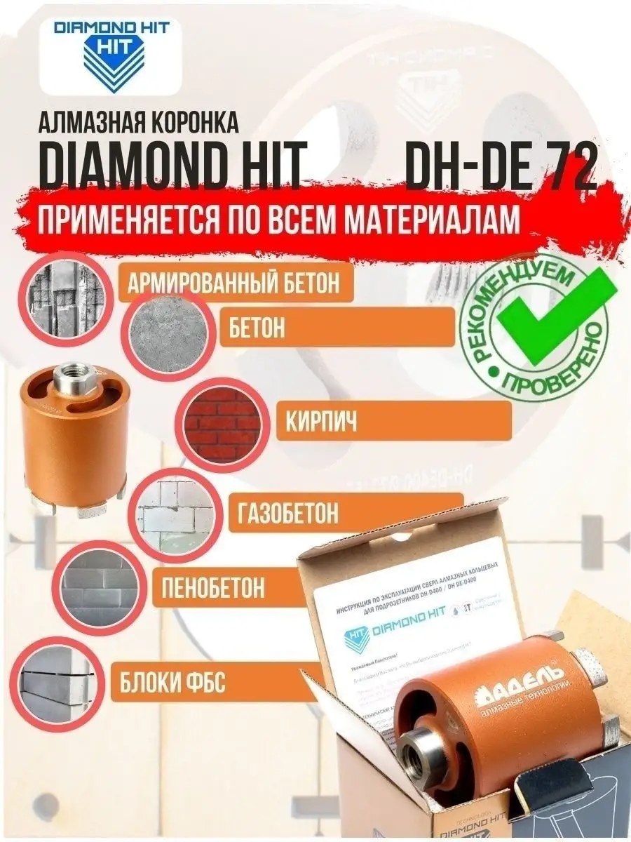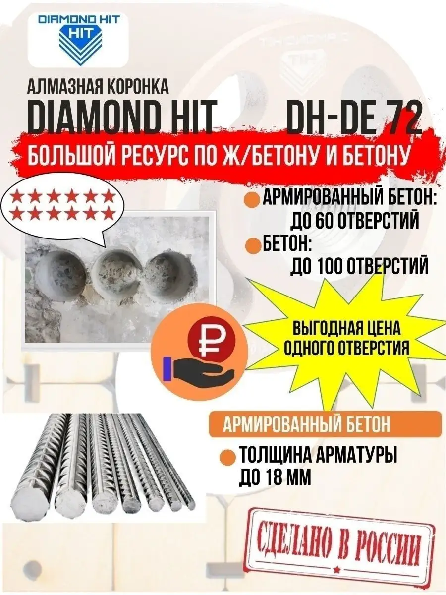 Коронка по бетону DIAMOND HIT обеспечит точное и быстрое сверление для розетки, экономию времени и идеальный результат даже в самых сложных условиях!