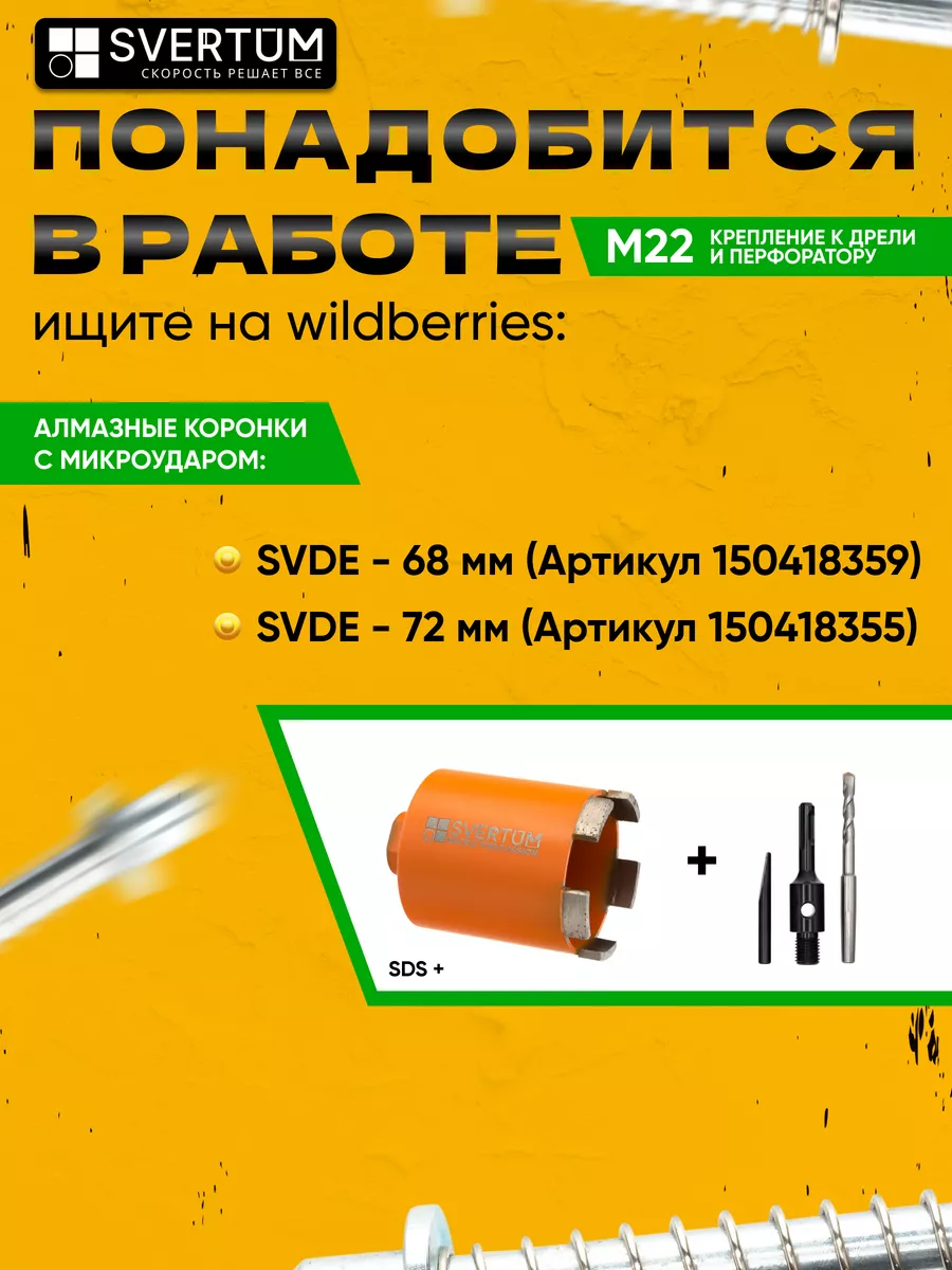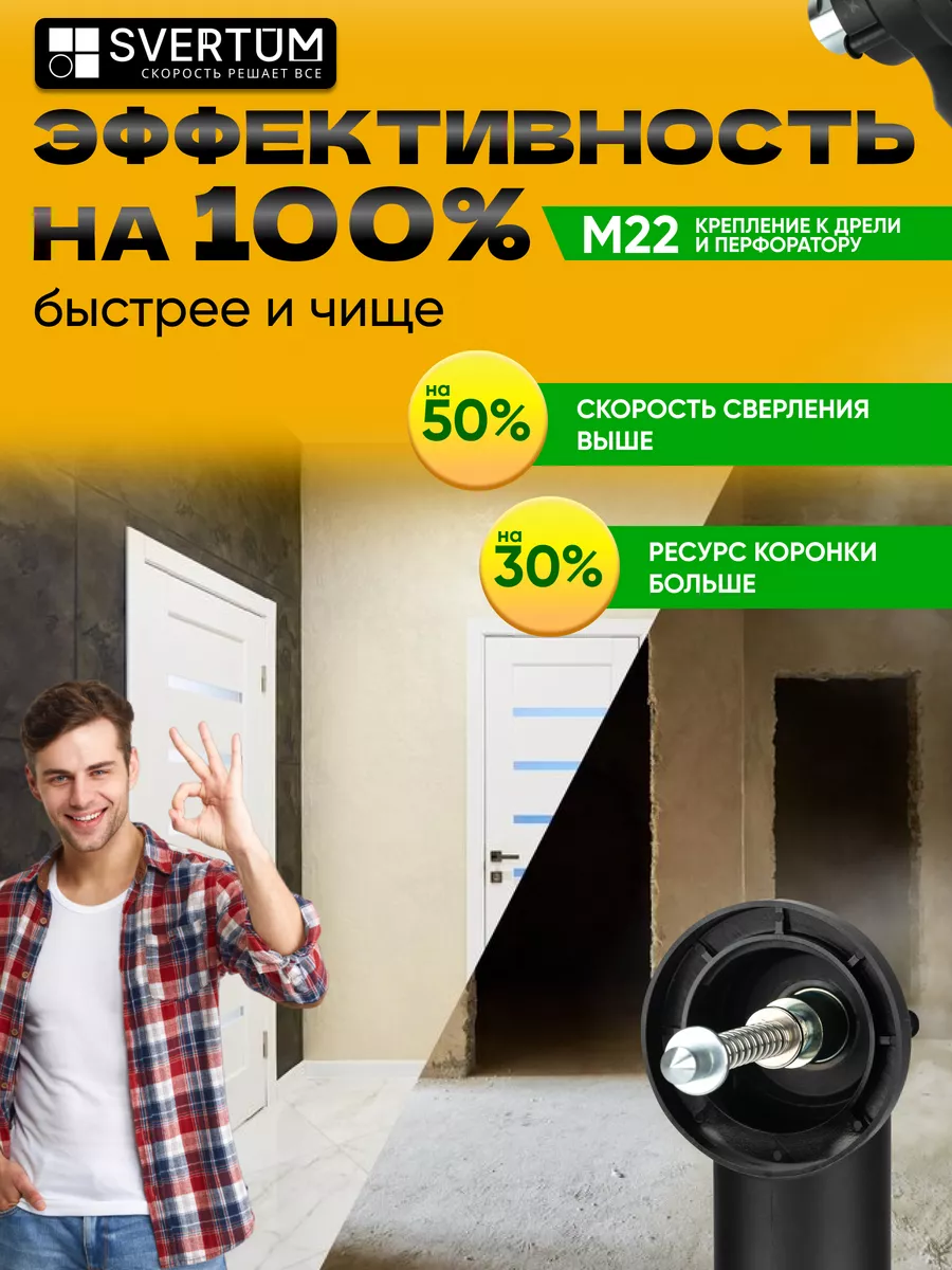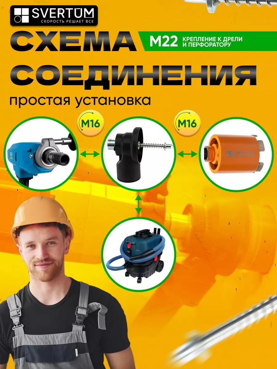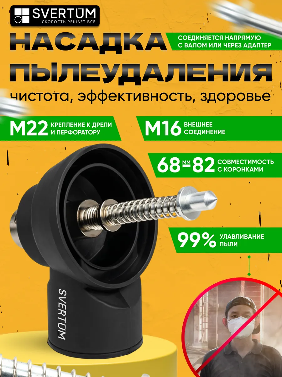 Насадка для пылеудаления для алмазных коронок М16-М22 Svertum и пылеотвод для алмазных коронок под перфоратор и дрель.