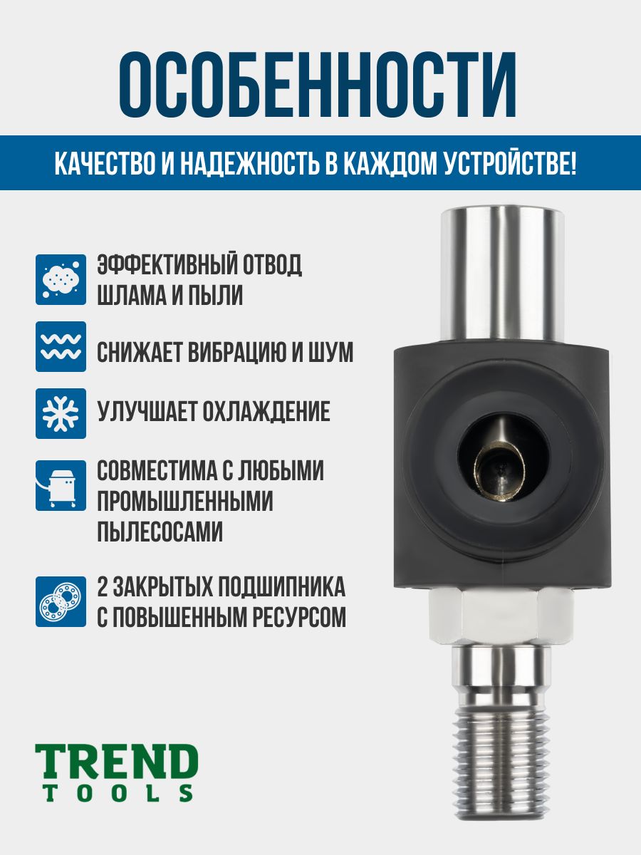 Инновационная система пылеудаления для алмазных коронок. Применяется при сухом сверлении и сухом сверлении с микроударом. Оснащена резьбой на вале 1 ¼ с защитным, антикоррозийным покрытием. Система пылеудаления имеет антивакуумные компенсаторы. Корпус создан из литьевого противоударного пластика. Используется как пылеотвод для сверления, обеспечивая надёжное удаление пыли и шлама при работе с бетоном, кирпичом и камнем. Насадка для дрели и перфоратора функционирует как пылесборник для перфоратора и подходит для всех популярных моделей инструментов.