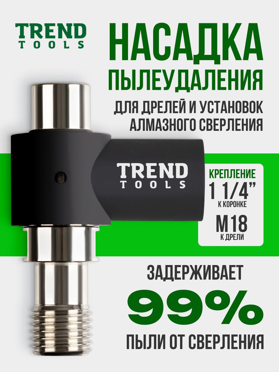 Инновационная система пылеудаления для алмазных коронок. Применяется при сухом сверлении и сухом сверлении с микроударом. Имеет самый минимальный вес из всех пылеотводов для сверления, представленных на Российском рынке, всего 540гр. При этом позволяет достичь максимального воздушного потока. Оснащена укороченной резьбой на вале 1 ¼ с защитным, антикоррозийным покрытием. Система пылеудаления имеет антивакуумные компенсаторы. Корпус создан из литьевого противоударного пластика. Используется как пылеотвод для сверления, обеспечивая надёжное удаление пыли и шлама при работе с бетоном, кирпичом и камнем. Насадка для дрели и перфоратора функционирует как пылесборник для перфоратора и подходит для всех популярных моделей инструментов.