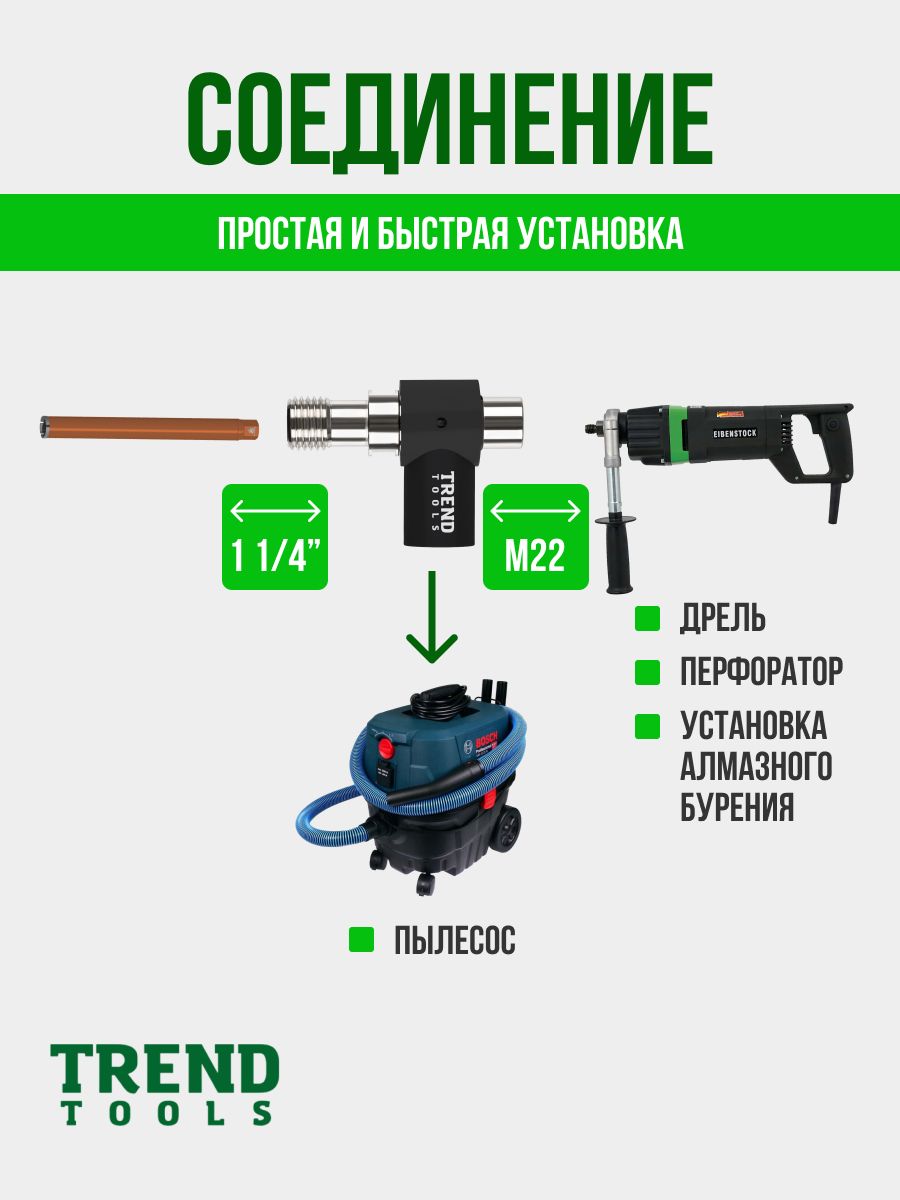 Это идеальный пылеуловитель для мастеров, которые ценят чистоту и безопасность на рабочем месте. Благодаря специальной конструкции, насадка работает как пылеотвод для перфоратора и для коронки.