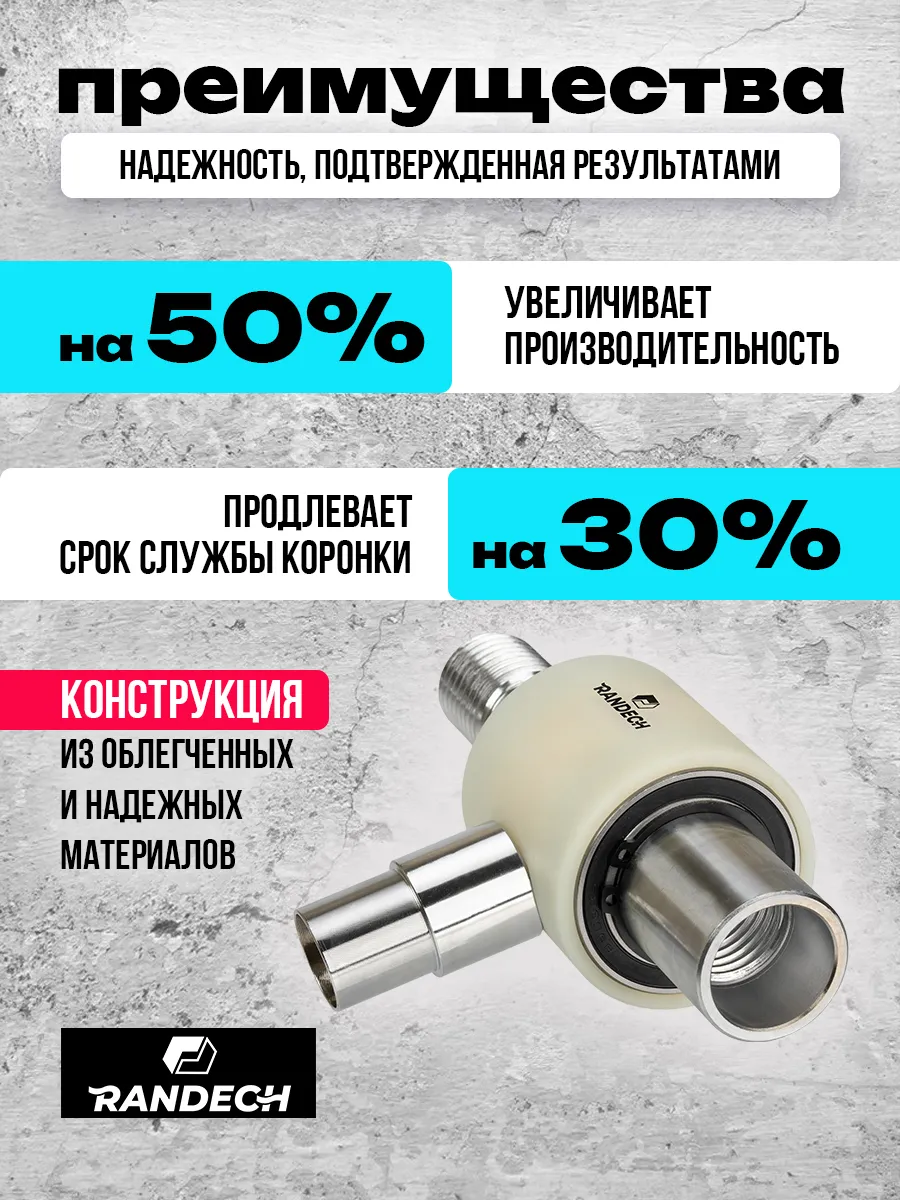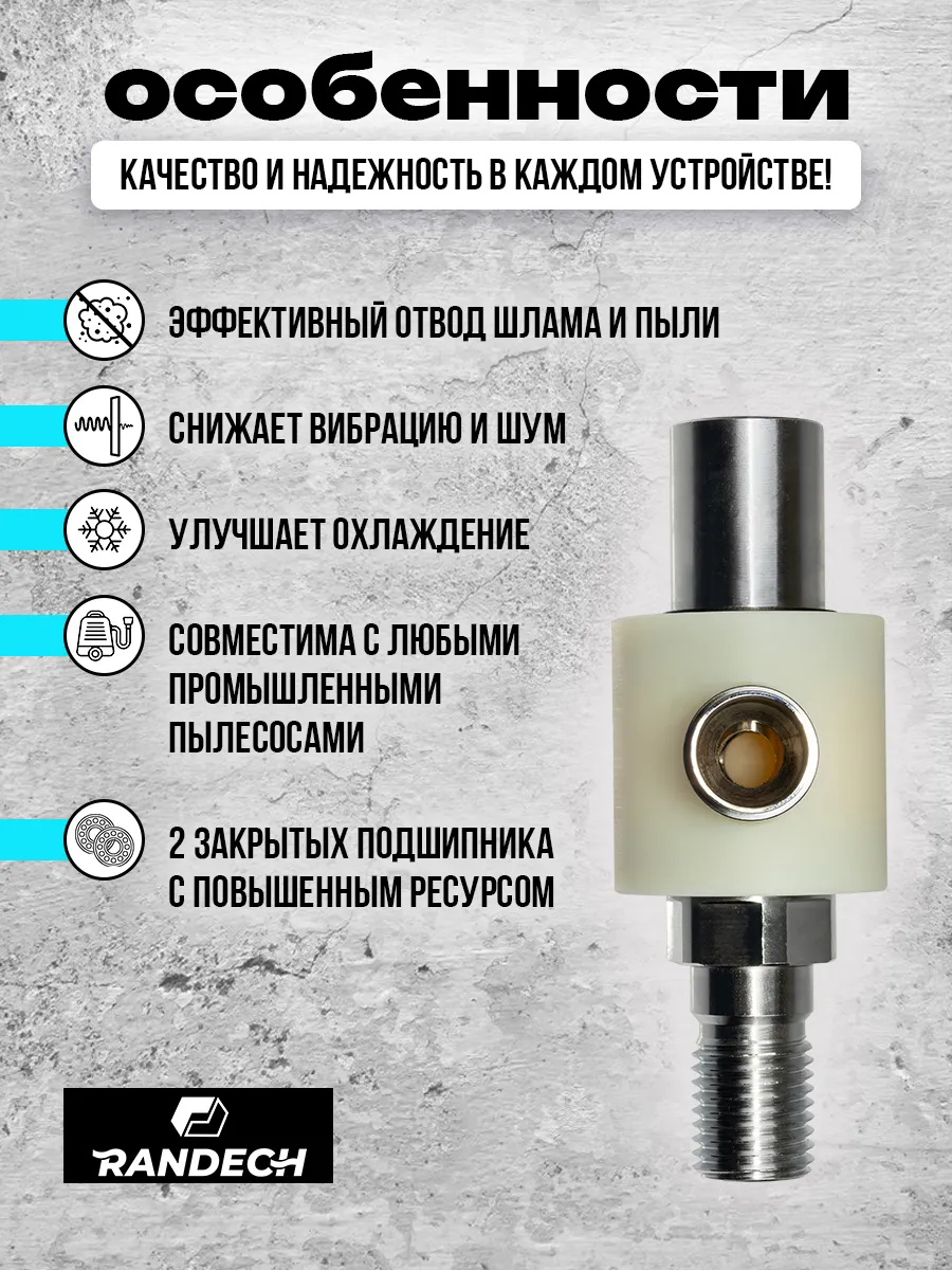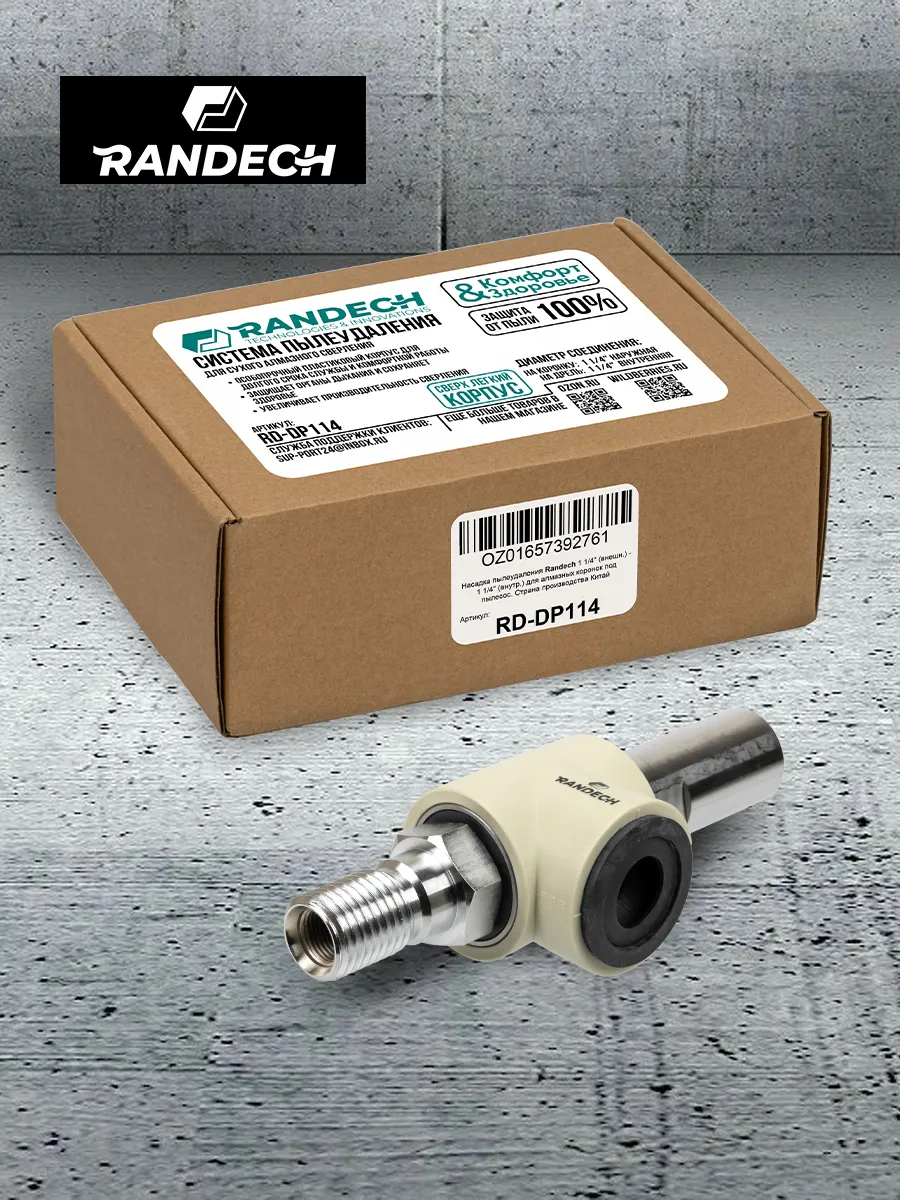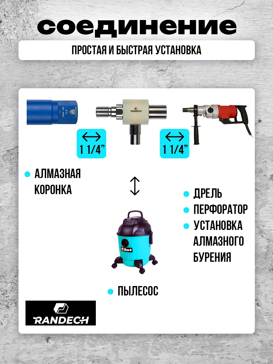 Система пылеудаления 11/4" - 11/4 " Randech для алмазных коронок предназначена для отведения пыли и шлама при сухом сверлении бетона,кирпича и других материалов при алмазном бурении.