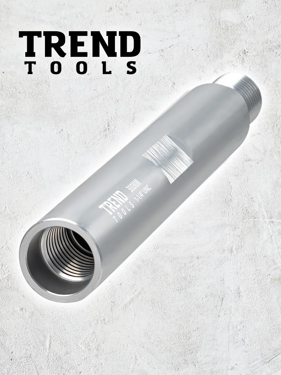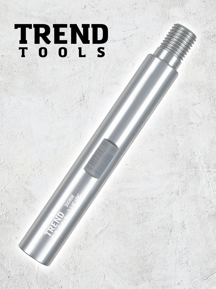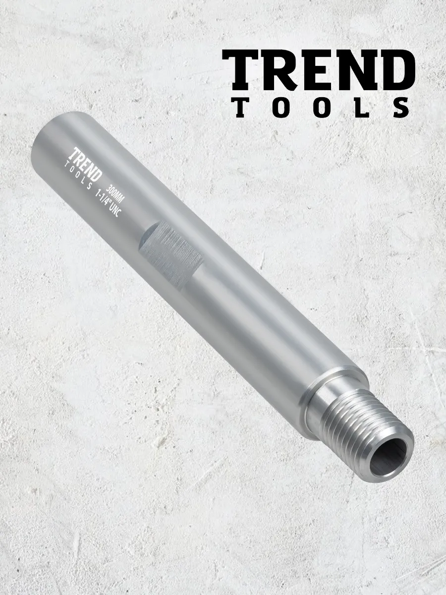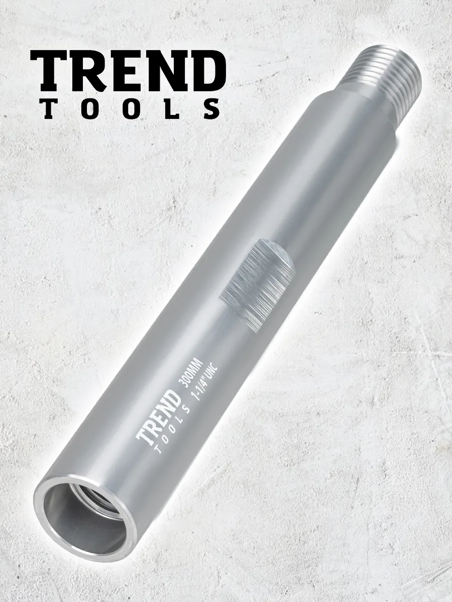 Удлинитель для алмазной коронки 1 1/4" 300 мм алюминиевый (1.25 дюйма / дюйм с четвертью) от компании Trend Tools предназначены для увеличения глубины сверления или бурения при работе с бетоном, кирпичом и железобетонными конструкциями.