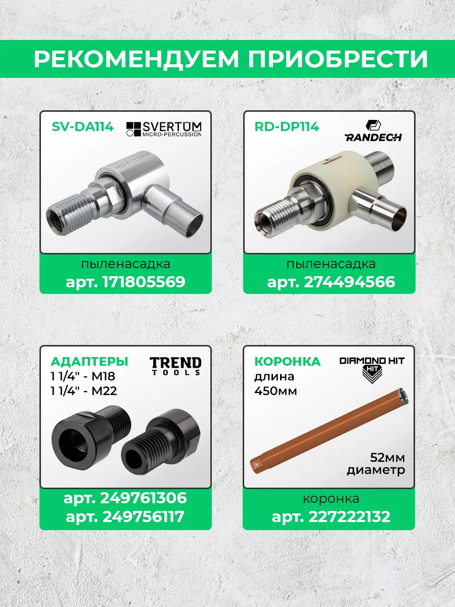 Серия TT-E от Trend Tools разработана для профессионального применения. Легко устанавливается, надёжно фиксируется и выдерживает высокие нагрузки. Подходит как для строительных, так и для монтажных задач где применяется алмазное бурение.